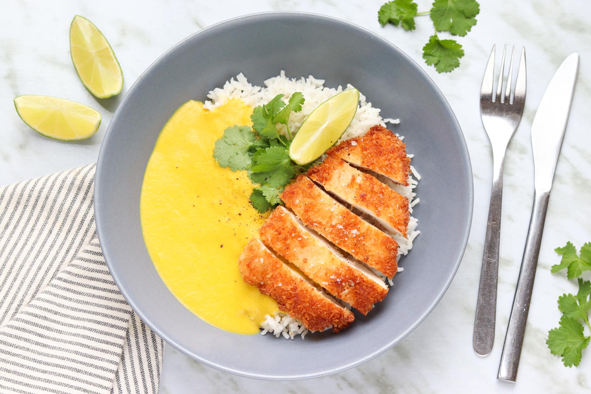 Chicken katsu er en lækker og børnevenlig japansk ret med pankopaneret kylling, fyldig karrysovs og ris. Vi elsker den og håber, at du og din familie vil gøre det samme. God fornøjelse!