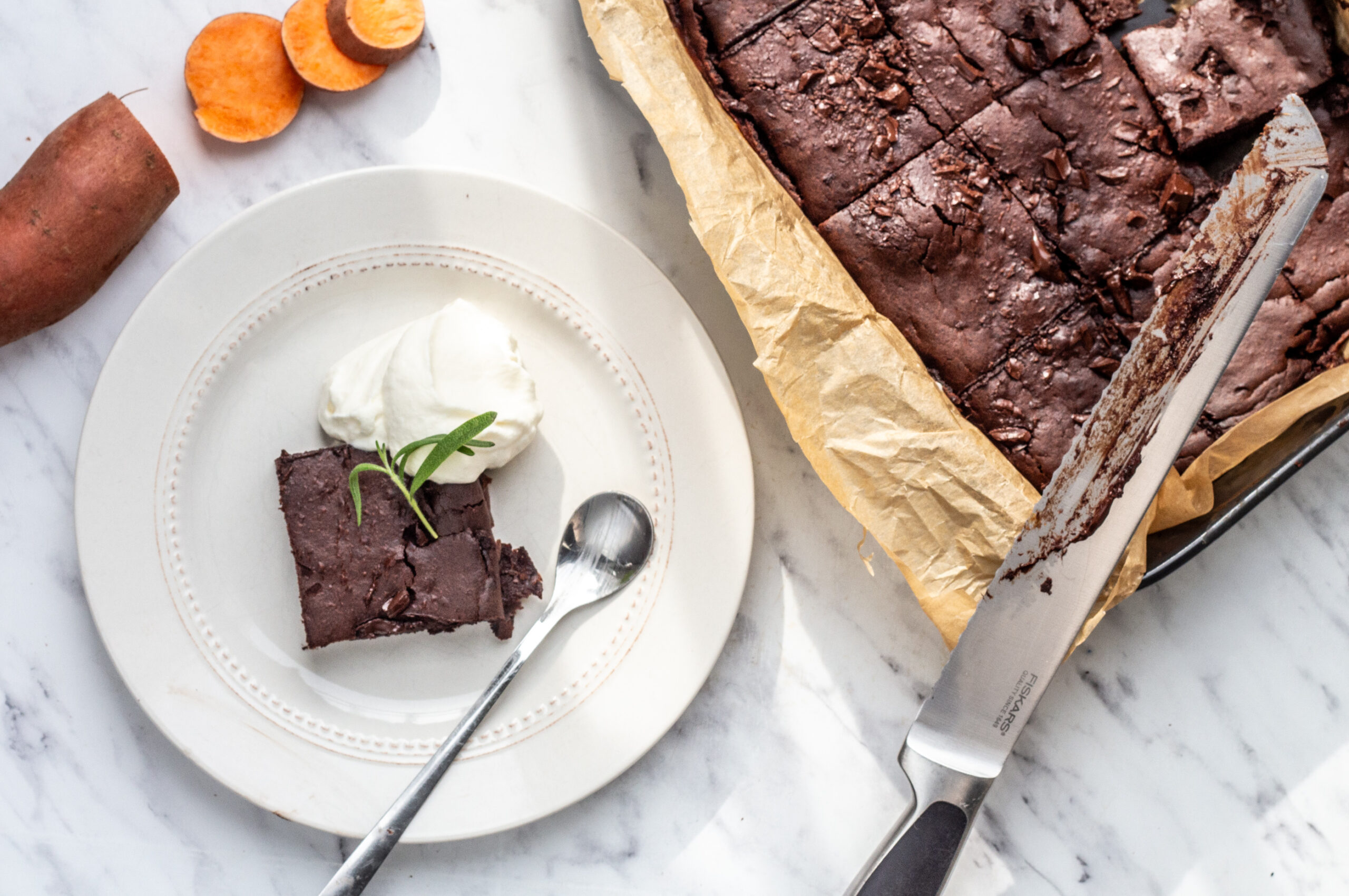 Cremet brownie med søde kartofler