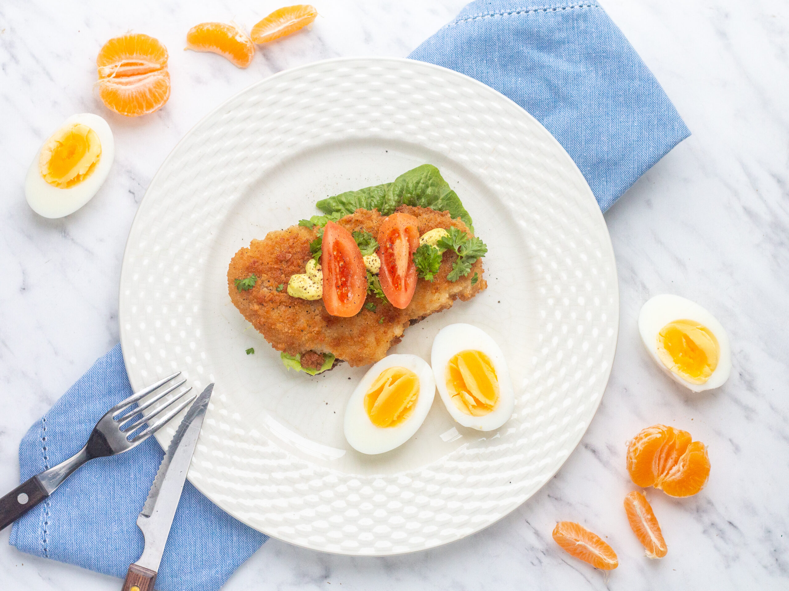 I dag står den på sprøde fiskefileter serveret på rugbrød med remoulade, salat og tomat. Du kan også vælge at servere æggene på rugbrød med mayo. Hertil clementiner. God fornøjelse!