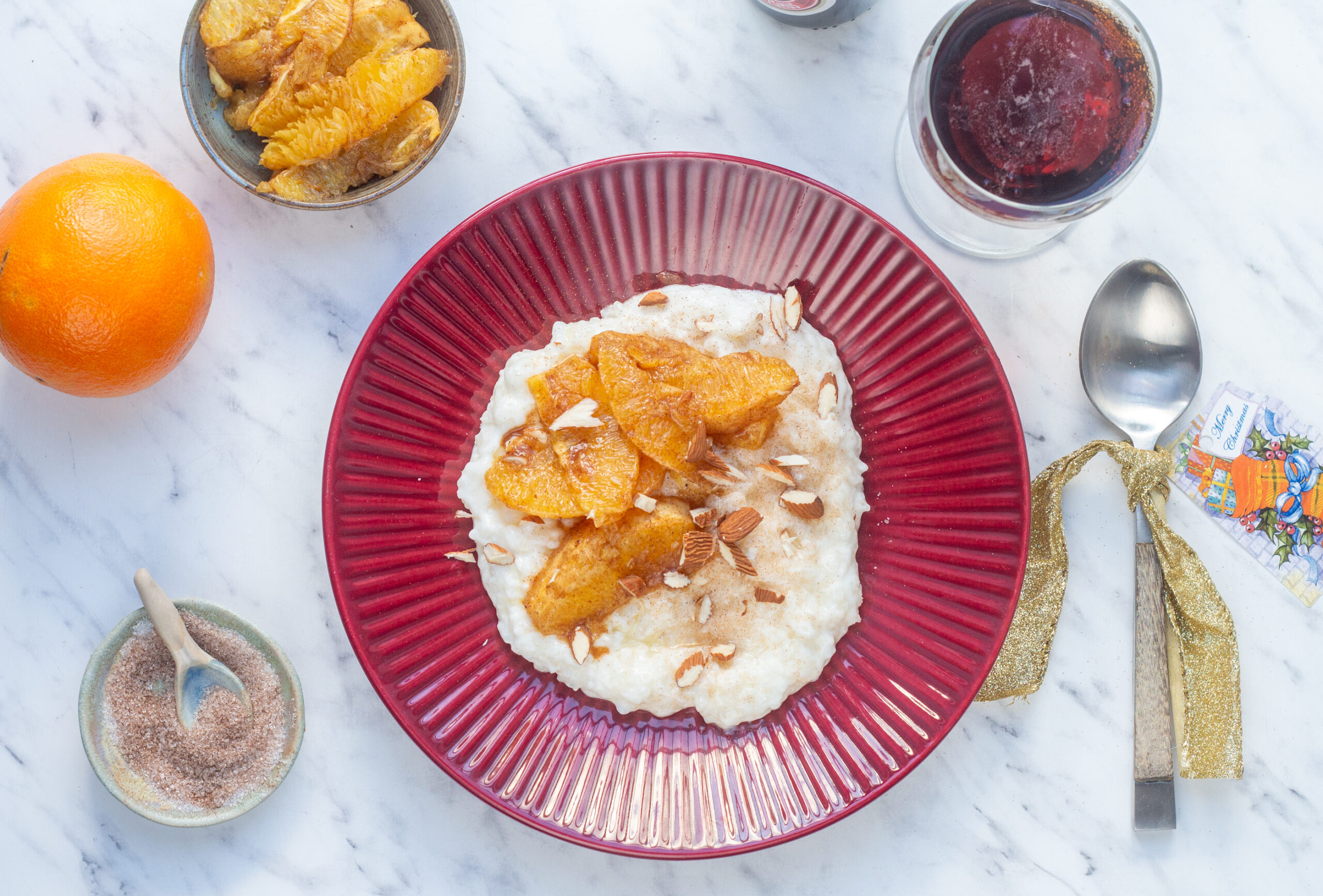 Vi har gjort det ekstra nemt at komme i julestemning på dage med fart på! Vi har brugt en færdiglavet risengrød og toppet den med en lækker hjemmelavet appelsinkompot og hakkede mandler. God fornøjelse!